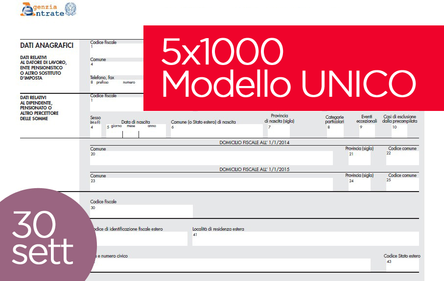Le persone fisiche che presentano il modello UNICO hanno tempo fino al 30 settembre per scegliere la propria preferenza sul 5×1000.